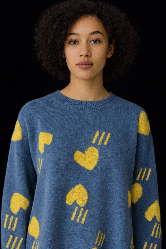 Signature Heart Motif Knit – Luxury Statement Sweater Collection