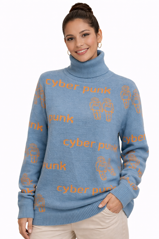 “Today & Yesterday” Signature Turtleneck – Statement Graphic Knit