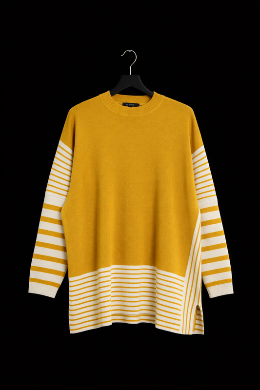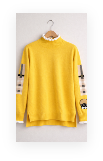 Signature Yellow/White Knit – Plaid Accent Sleeve