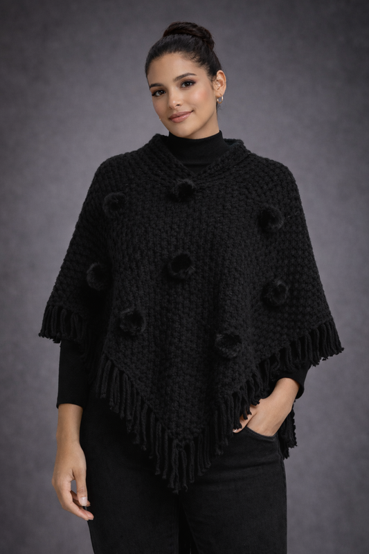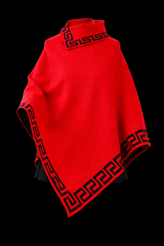Greek Key Luxe Poncho-Premium Knit Greek Border Design
