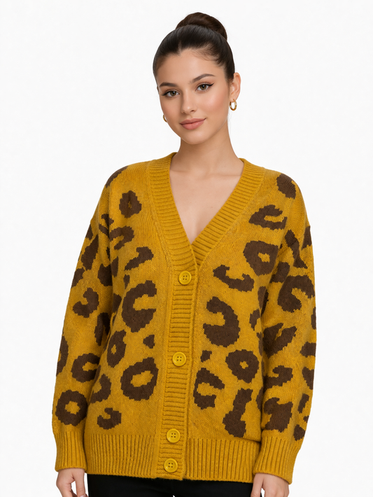 “Luxe Wild Knit Cardigan – Signature Animal Print Collection”