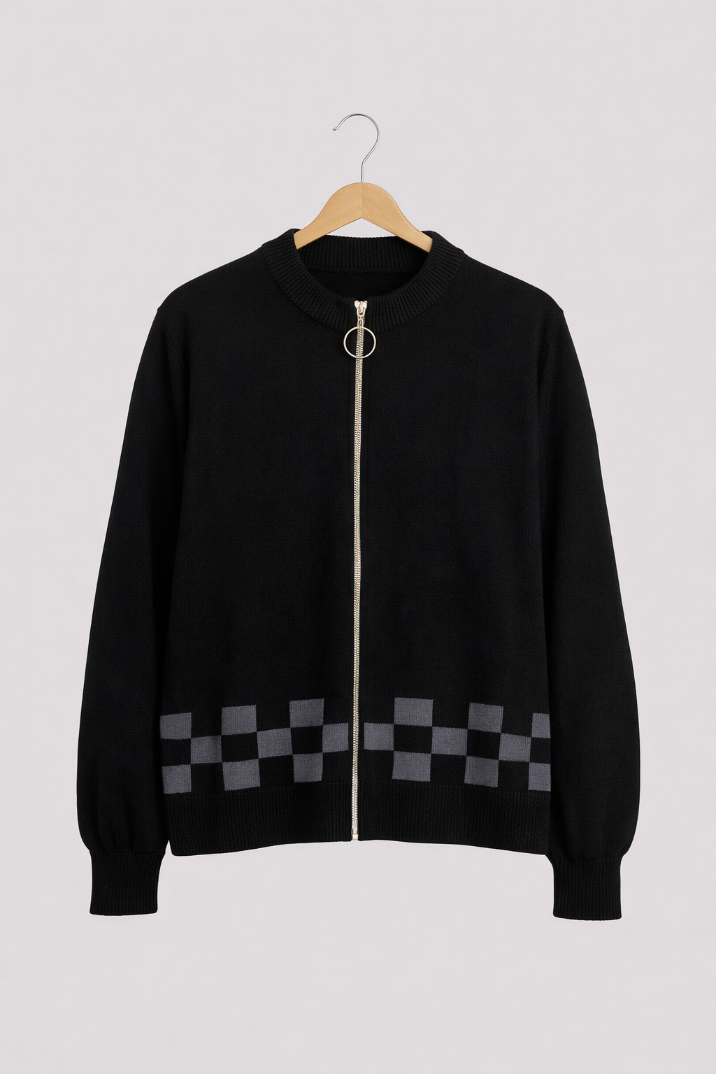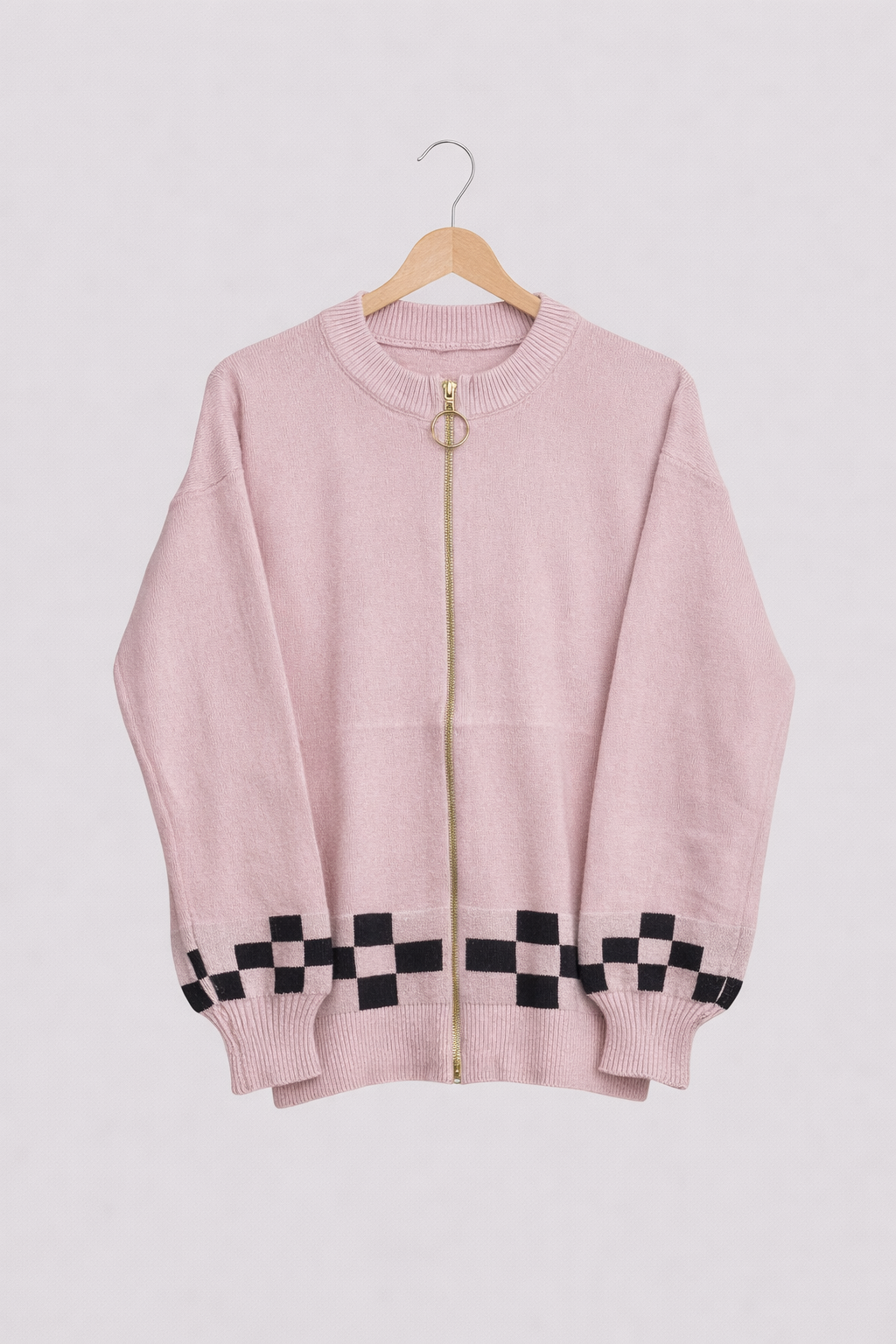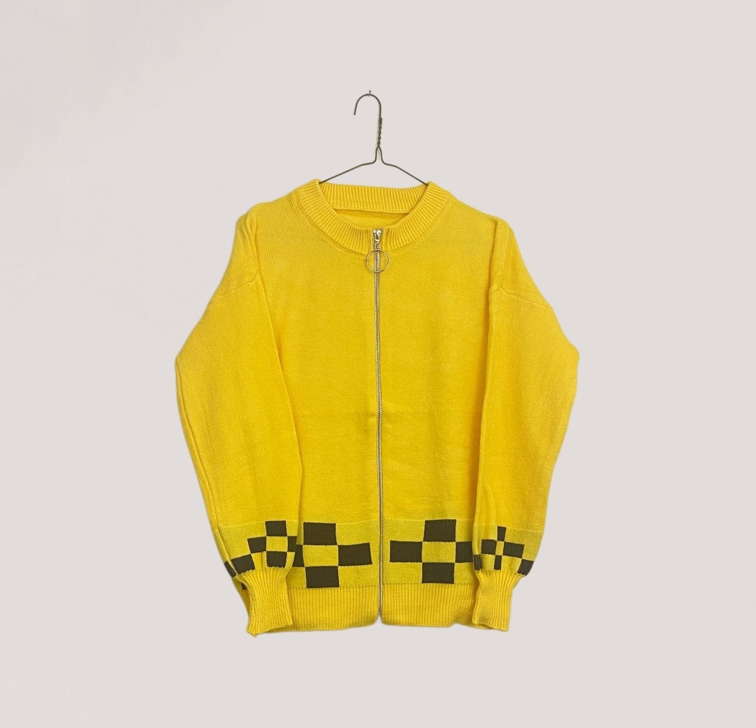 Soft Cardigan Tops with checkerboard detail at downside! Available In 4 colors-Black; White, Pink and Turmeric Yellow. Elegant luxury blouse crafted with a soft feel and a clean, sophisticated finish.